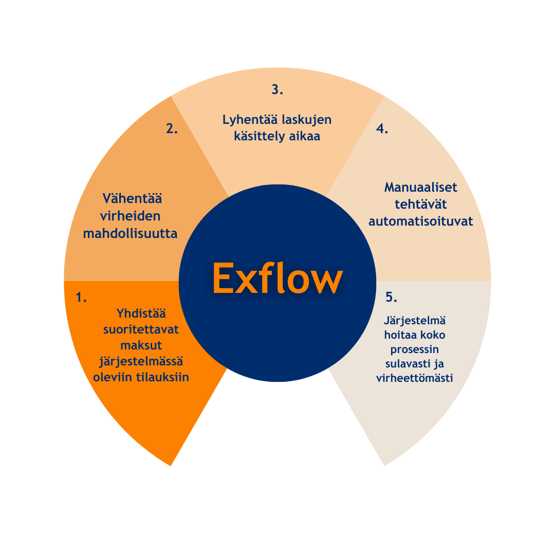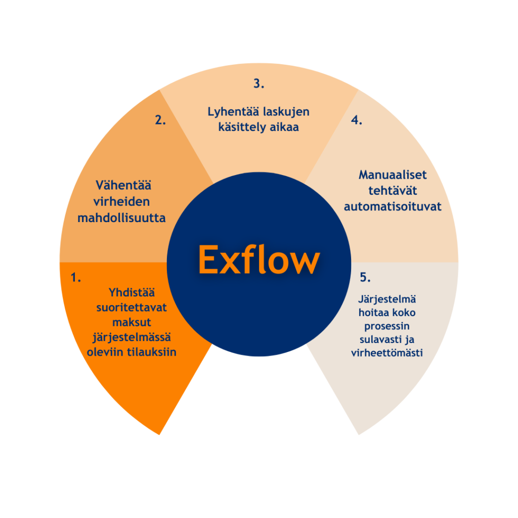 ExFlow -ostolaskutus on vastaus liiketoimintasi tarpeisiin tarjoten tinkimätöntä laadukasta ja asiantuntevaa osaamista ostolaskujen hallintaan. Yrityksesi ansaitsee parasta, ja siksi tarjoamme ratkaisun, joka mullistaa ostolaskujen käsittelyn ja hyväksynnän. Salli meidän näyttää, miksi meidän Exflow -järjestelmämme on vastaus tehokkuutta kaipaavien yritysten tarpeisiin.